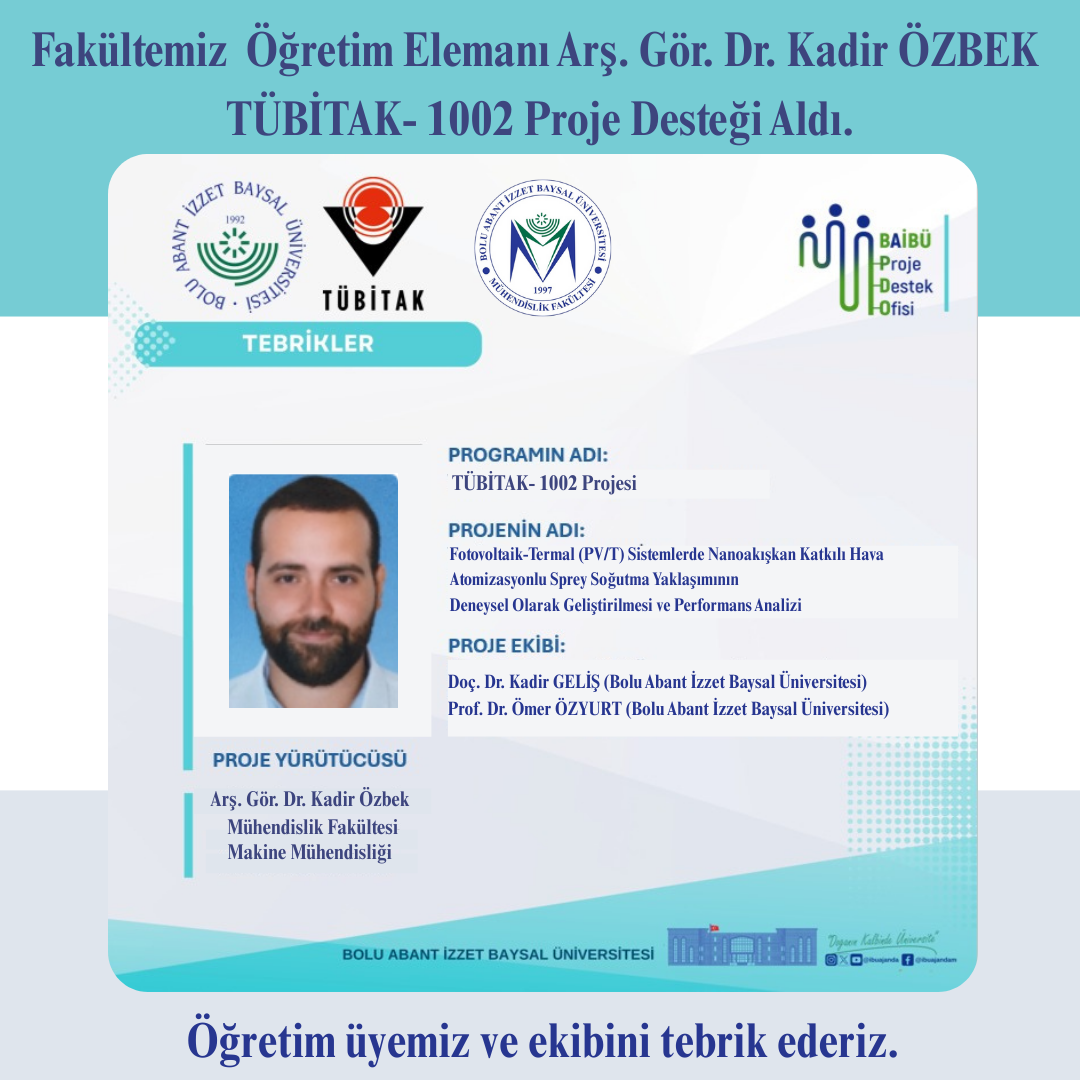 Fakültemizin TÜBİTAK 1005 Projesi Desteklendi.