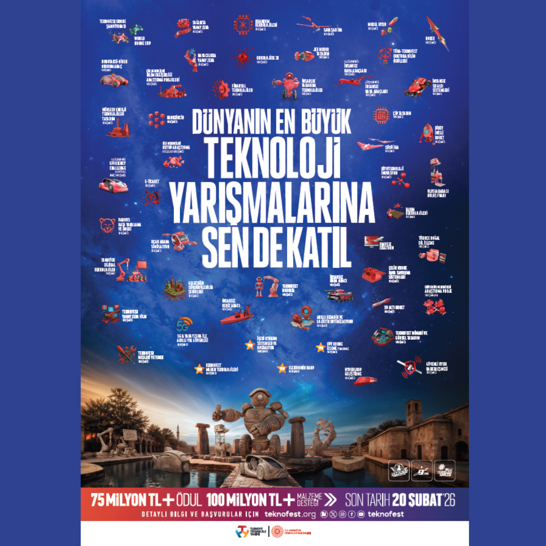 TEKNOFEST 2026 Teknoloji Yarışmaları, teknoloji üretme vizyonuna sahip tüm gençleri projeleriyle geleceğe yön vermeye davet etmektedir.