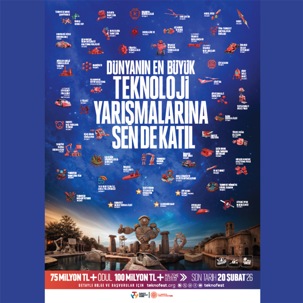 Dünyanın en büyük teknoloji festivallerinden biri olan TEKNOFEST, 2026 yılında düzenlenecek teknoloji yarışmaları için başvuru sürecini başlatmıştır. Türkiye’nin millî teknoloji hamlesine öncülük eden TEKNOFEST, 9. yılında da yenilikçi fikirleri desteklemeye ve genç yetenekleri teknoloji üretme yolunda teşvik etmeye devam etmektedir.