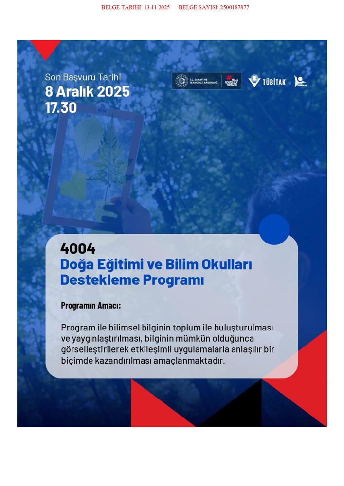 TÜBİTAK 4004-4005 Programı başvuruları Devam Ediyor